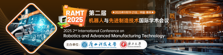 第二届机器人与先进制造技术国际学术会议(RAMT 2025)由广西科技大学主办,yl23455永利官网联合主办,广西科技大学自动化学院,yl23455永利官网承办,将于2025年9月19-21日在中国柳州举办。此次会议将围绕机器人、机电技术、机械及制造等领域的最新研究成果展开讨论,并广泛邀请了国内外领域内的著名专家与学者。会议旨在搭建一个供国内外高等学府、科研机构以及企业界等专业人士进行学术交流和成果展示的平台。RAMT 2025诚意邀请相关领域的专家学者参与交流,共同推动学科发展和行业进步。