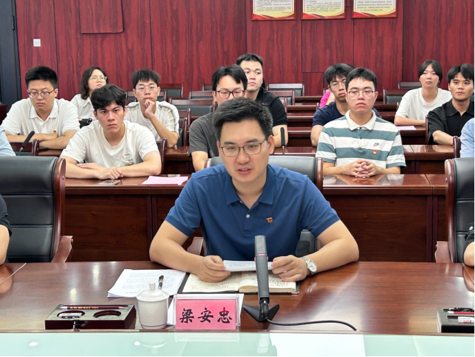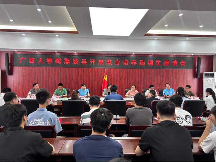 为贯彻落实学校党委关于选调生工作的决策部署,推动我校选调生“君武青苗”行动工作走深走实,7月22日,学院党委书记卢婵江带队赴那坡县开展调研,深入了解选调生在基层的成长情况与工作成效。调研团成员包括学院党委副书记黄路明,学院副院长黄豪中、莫帅、陈宏波,机自系主任邓建新,团委书记李华,助理教授谭鸿创,辅导员农婷婷、宋丹婷、梁炜昊、曾祥喜,以及21名学生党员代表。那坡县委常委、组织部部长梁安忠,那坡县妇女联合会党组书记、主席蓝婧月,那坡县委组织部副部长黄波,那坡县党员教育中心副主任黄家尤等接待了调研团,在那坡县工作的yl23455永利官网选调生代表也参加了交流座谈会。